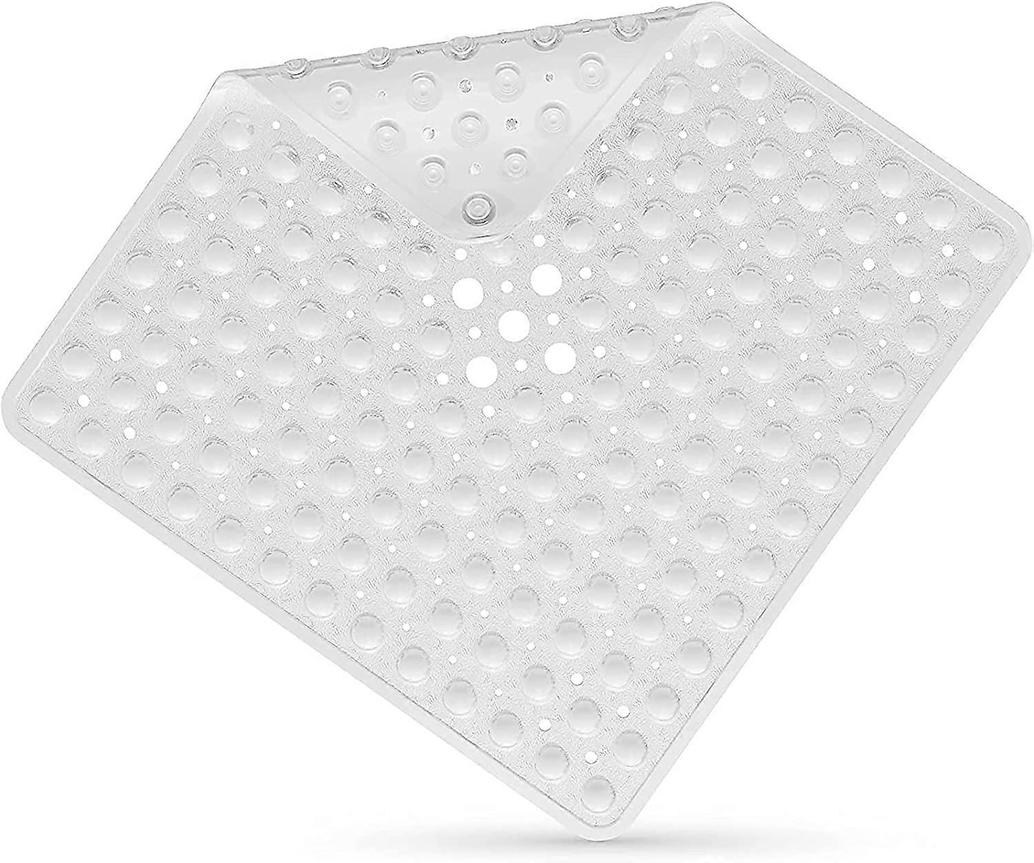Shower Mat 53x53 cm Mold Resistant Square Shower Non-Slip Mat with Suction Cups White Machine Washable