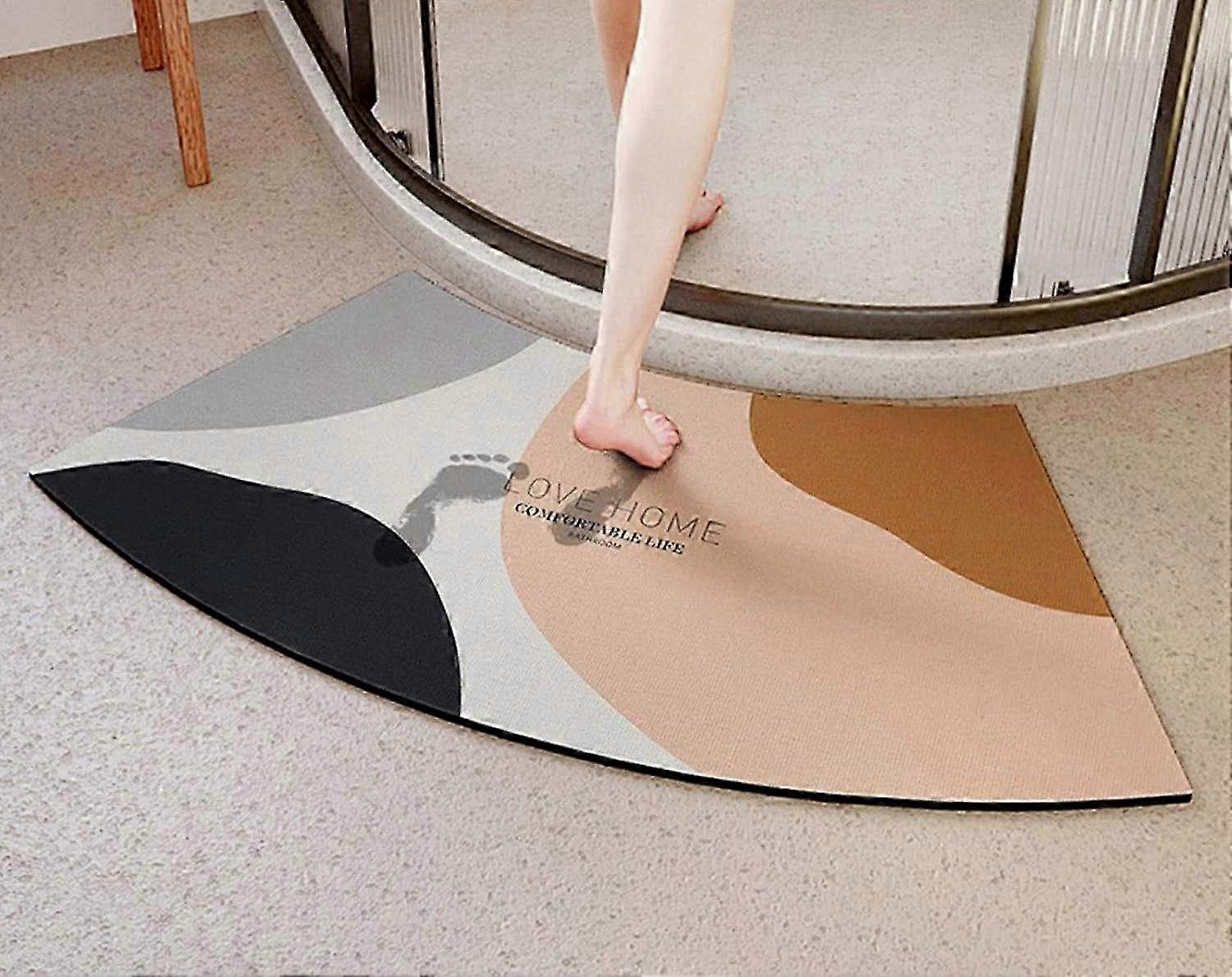 Quick Dry Curved Bath Mat for Shower, Non-Slip Absorbent Floor Mat Suitable for Simplicity Indoor Bathing, Diatomite Stone Design