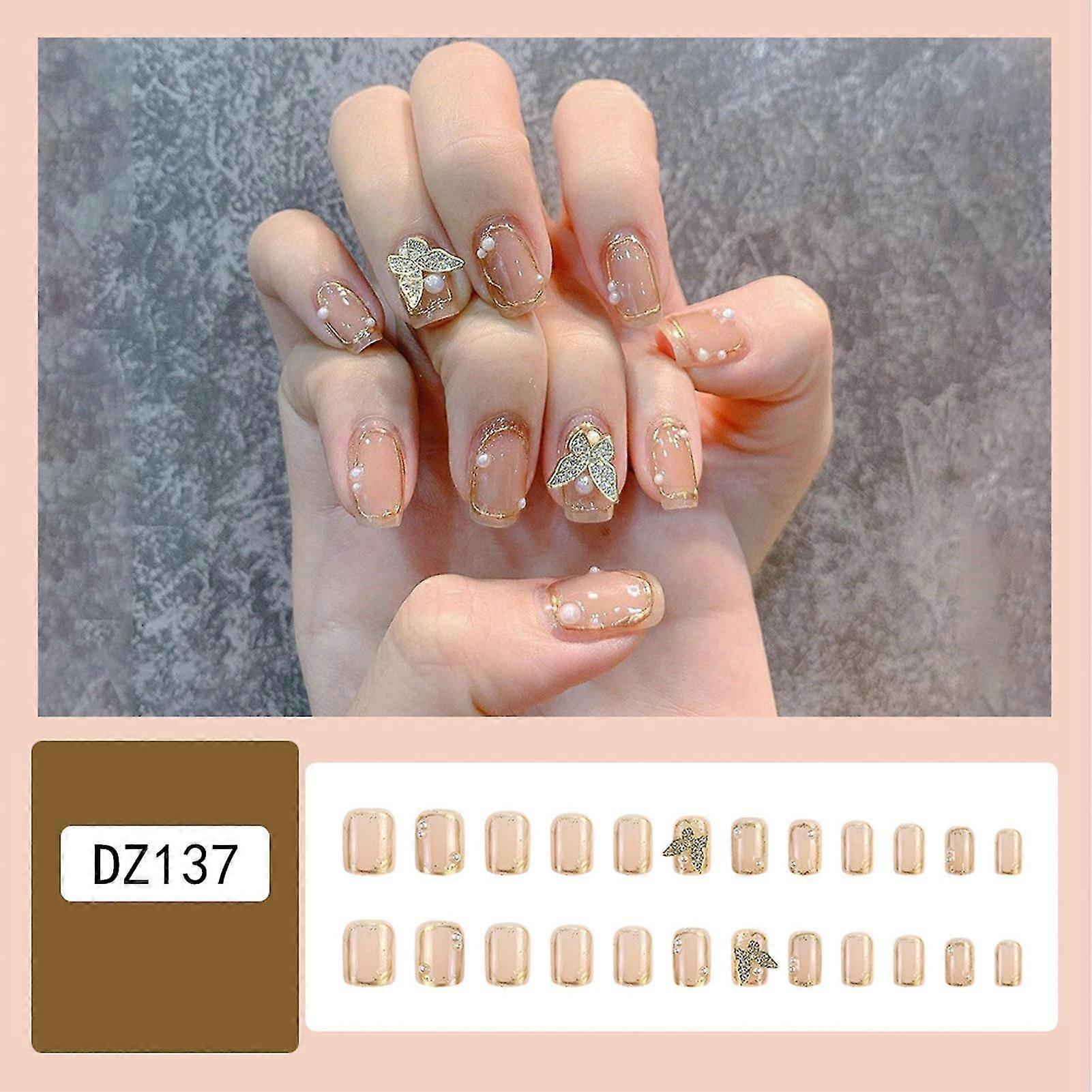 Champagne Translucent False Nails Short Press On Nails Elegant Fingernails Glue Models