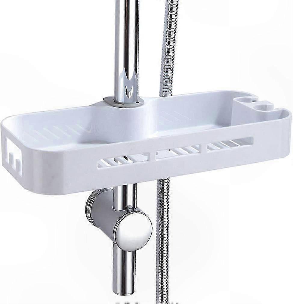 Bathroom Shower Storage Shelf with 2 Hooks for Shampoo and Accessories Fits 23-25mm Rails No Drilling Required