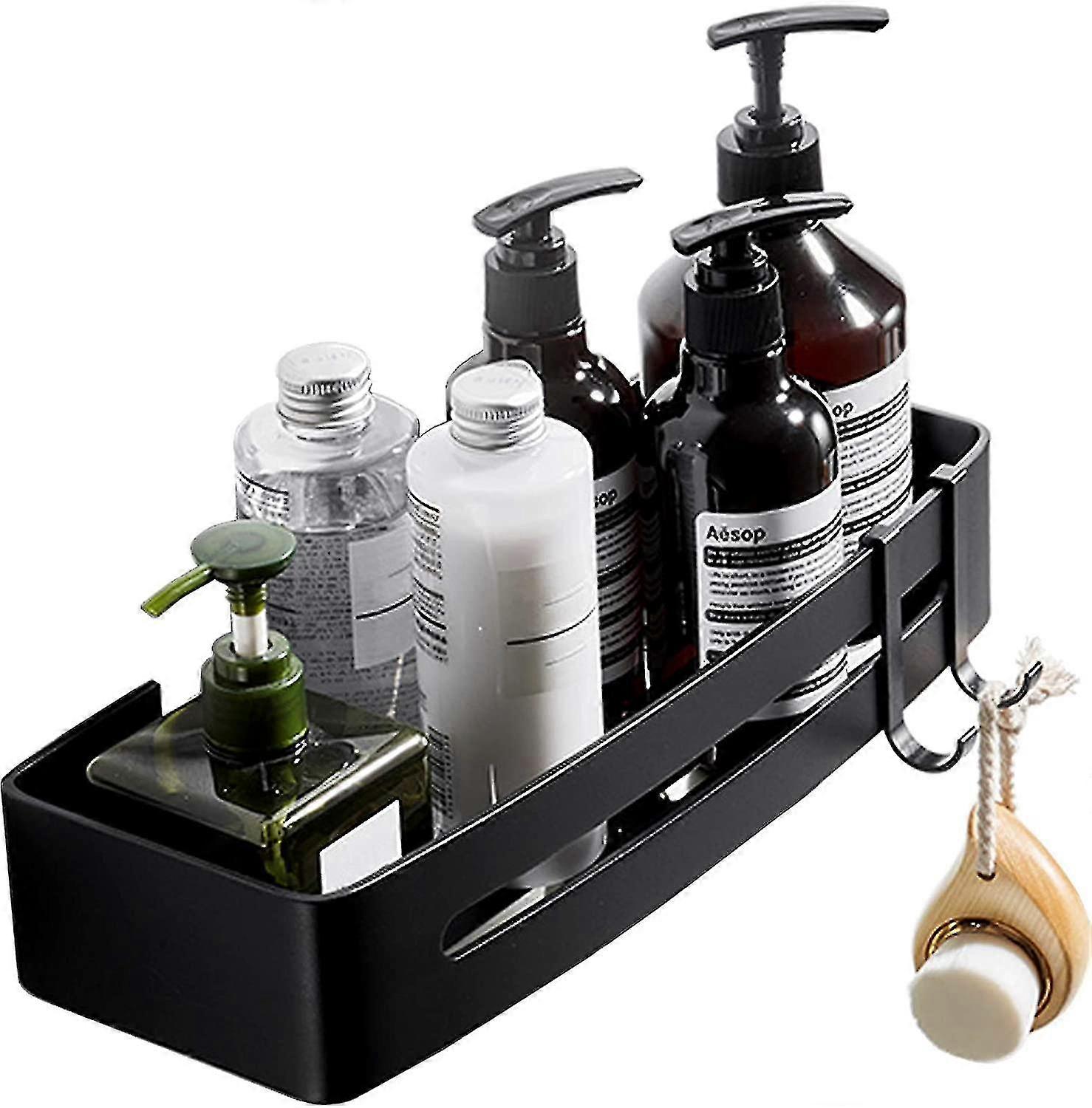 Bathroom Shower Caddy Adhesive Shelf For Shampoo Storage, No Drilling Wall Mounted Shower Basket Organiser, Rustproof Aluminum With 2 Hooks, Black, 32