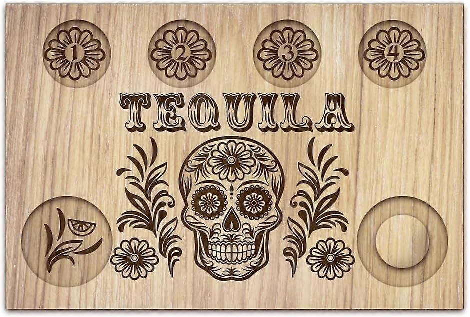 Sugar Skull Tequila Shot Glasses Serving Tray Wooden Glass Holder with Salt Rim Shot Glasses Board for Bar Restaurant Party Family Gathering 7.87x11.8