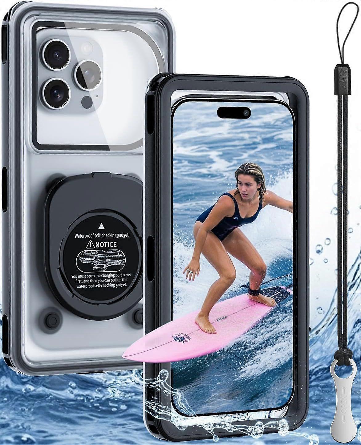 IPX8 Certified ProtectionOur diving phone case has been rigorously tested and certified IPX8 by SGS. It can keep your phone safe and dry at depths of up to 100FT/30m for 30 minutes. It's not only waterproof but also shockproof and dustproof, making it the perfect companion for a wide range of water sports like diving, snorkeling, swimming, and more.Crystal Clear Underwater ShotsThe back cover is made of high-quality, transparent PC material that maintains clarity and prevents fogging. The specially designed oversized camera window allows you to take stunning underwater photos and videos as if your phone wasn't in a case. Whether you're exploring the ocean depths or just having fun in the pool, you'll never miss a great shot.Sensitive Underwater TouchscreenThanks to the unique airbag design, this waterproof case creates an air barrier between the soft film and your phone's screen. You can easily operate the touchscreen, take photos, and record videos underwater. However, please note that this case does not have side buttons. Make sure to enable your phone's Wake Up function in advance to capture those underwater moments.Safe & Reliable DesignThe case features a unique waterproof self - checking system that lets you ensure it's properly sealed before submersion. The sturdy and durable materials provide comprehensive protection for your phone. With this case, you can enjoy underwater photography without worrying about leaks or other accidents that might happen with other waterproof cases.Universal Fit & Easy CarryThis waterproof phone case is compatible with most smartphones up to 6.9 inches, including iPhone 16/15 series, Samsung Galaxy S24 series, and many other brands. It comes with a convenient lanyard for easy carrying. Just remove your original phone case and you're ready to go.