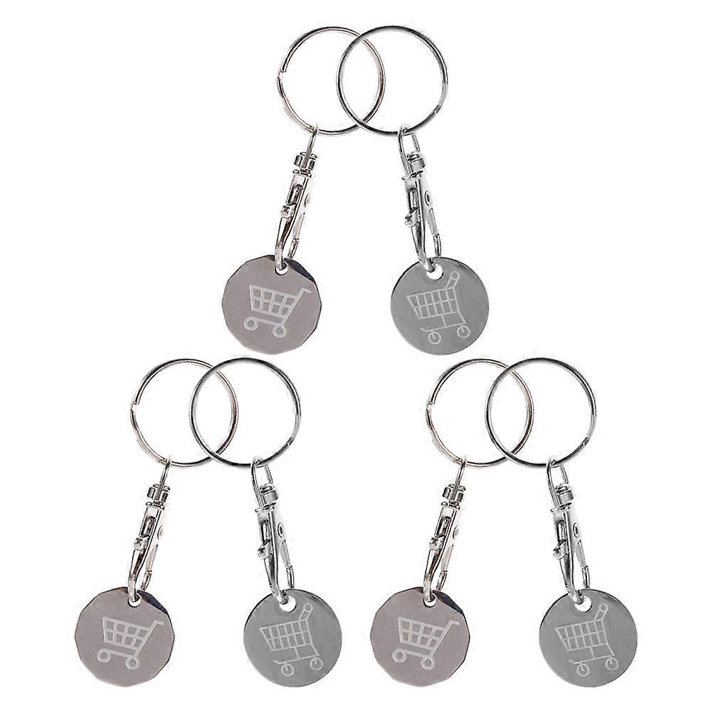 Shopping Trolley Tokens Pendant Design Sleek and Home Office 6Pcs Stainless Steel Key Ring