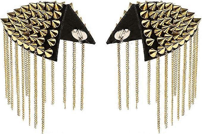 Shoulder Badge Epaulettes Gold Punk Rivet Tassel Shoulder Brooch Epaulet Blazer Epaulet Kpop Fringed Shoulder Accessories for Men Women Costume - 1 Pa