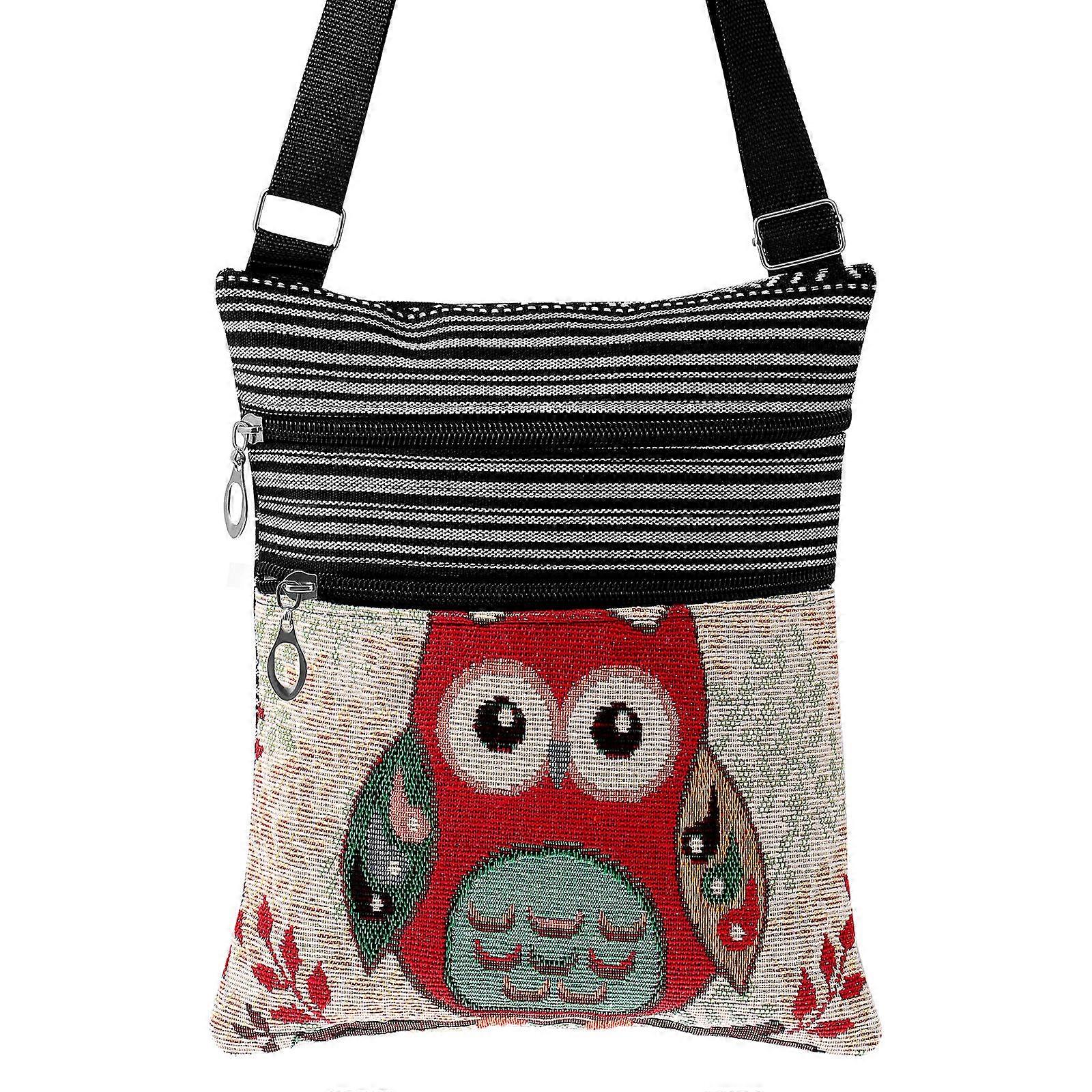 Shoulder Purse Canvas Zipper Bag Owl Printed Bohemian Crossbody Bag Women Dating 9.8X7.9X0.4in 1Pack