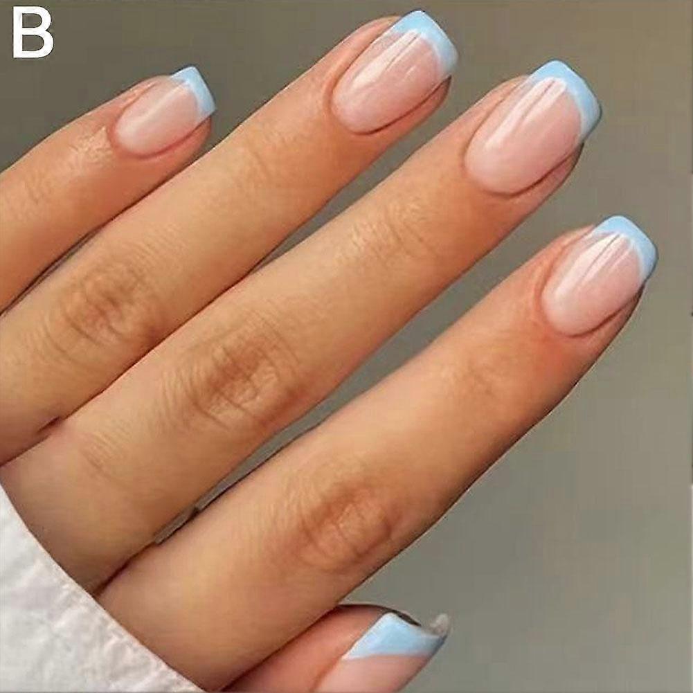Short Square Tips False Nails French Manicure Fake Press On Full Cover Nails