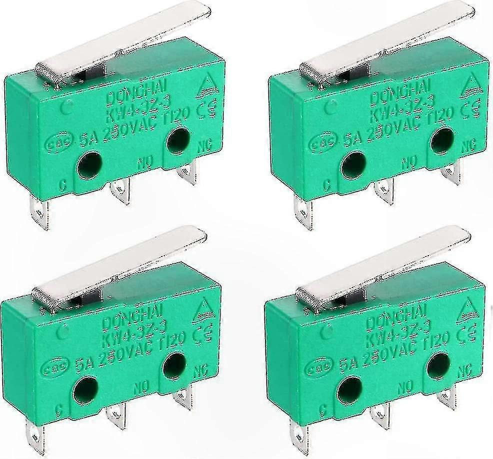 3-Terminal Micro Limit Switch with Short Straight Lever, SPDT Momentary Action, Green (4 Pack)
