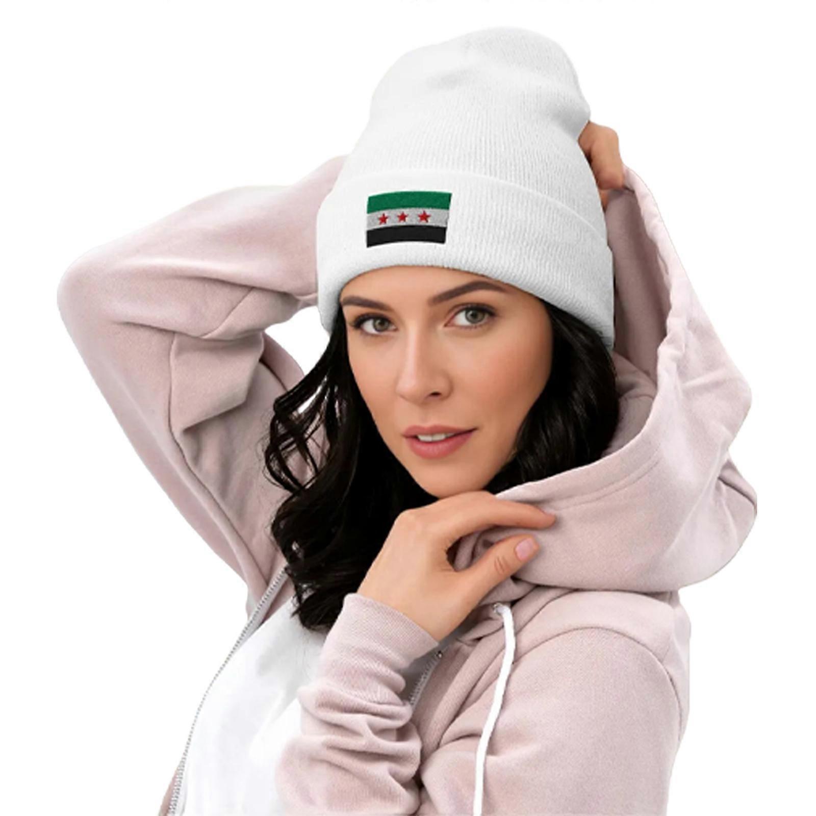 Syrian Flags Patched Knitted Brimless Hat Soft Comfortable Hat For Winter Outdoor Activity And Casual Event Gatherings white