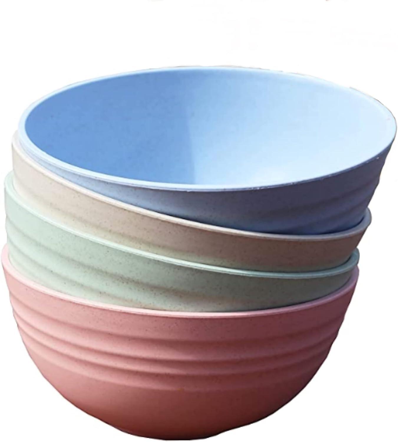 Sturdy and functional, weighing only a quarter of traditional ceramic bowls, they can be dropped on hard stone or tile floors without breaking, making them perfect for children and adults alike. Lightweight, strong, yet Virtually unbreakable, made of food grade material, yet eco-friendly as they are compostable, great camping bowls Great looking and made of high quality 3mm thick walls which makes them stronger and more durable than others. p> Great looking, soft pastel colors with a natural warm feel, kids love them because they make breakfast time fun. Microwave, dishwasher, refrigerator, and freezer safe for the bowls you use for a while each day.