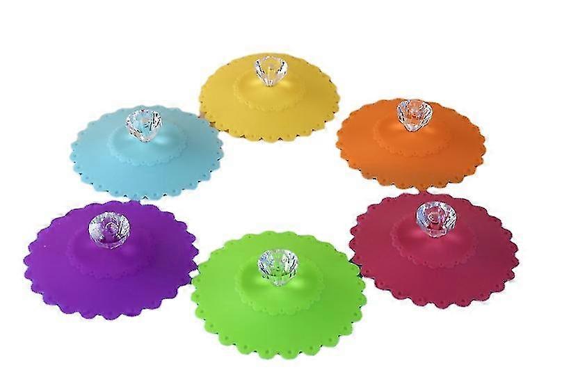Silicone Cup Coversreusable Anti-dust Cup Covers, Food-grade Silicone Drink Cup Lids, Creative Round Diamond Mug Cover(6pcs, Blue+yellow+red+gre