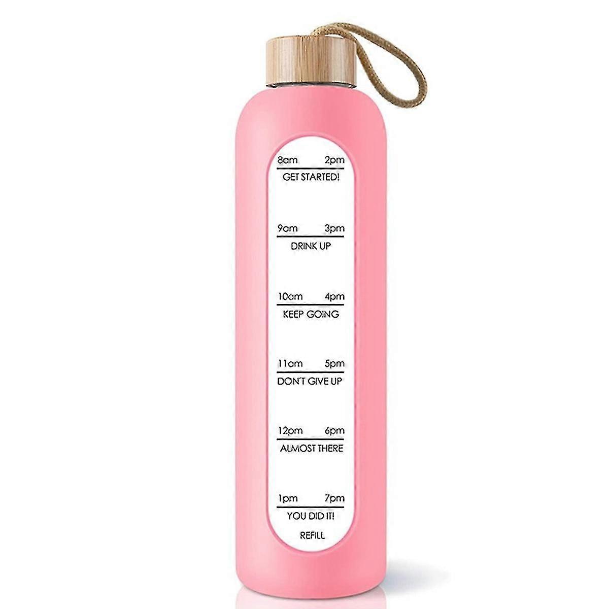 Water bottle glass with silicone cover, water bottle with time stamp, clear glass water bottle 1L