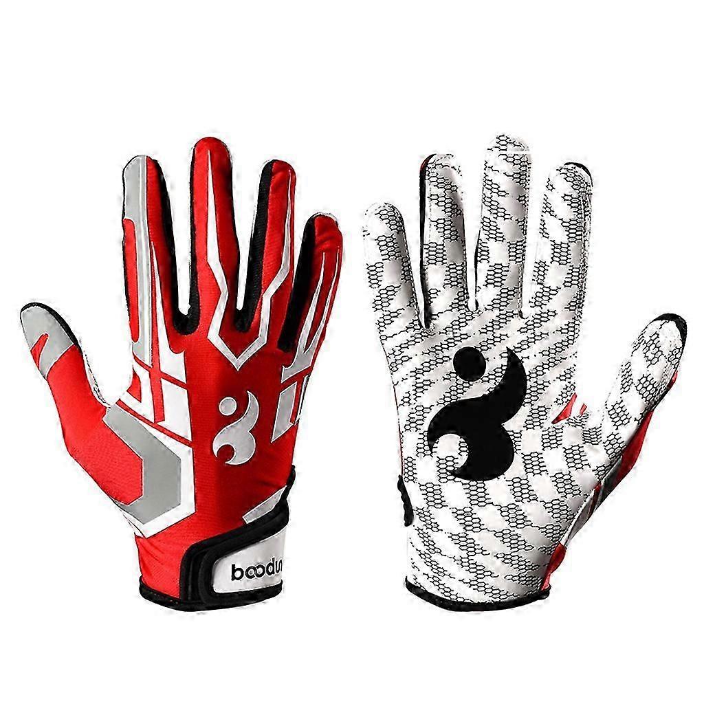 Features:brand new and high qualityBreathable: The fingertips are made of butterfly net cloth, and the back of the hand is designed with a combination of silicone + microfiber fabric, which is light, breathable and nonslip, ensuring dry and comfortable hands.Ergonomic design: talented designer of children's rugby football gloves. They are fans. They know how important the coolest design is to kids who are crazy about American football. This is definitely a perfect gift!High quality: The carpetlike silicone palm has been rigorously tested in actual usage scenarios. Made of a mixture of super sticky silicone and super fiber, it is easy to hold every football.Perfect fit size: This rugby glove is measured according to the size of different hands to ensure that the glove fits your hands perfectly, allowing you to enjoy the game.Unique paste design: The unique design of wrist paste can be adjusted according to your own situation to ensure that the gloves fit your hands perfectly, allowing you to enjoy the battle.Package Includes:1PairxGlovesSpecifications:Product Name: Rugby GlovesColor: White/ RedMaterial: Microfiber + SiliconeSize: S/M/LS code: palm circumference 1719(cm)/6.697.48inch ; palm width 7.58 (cm)/2.953.14inchM size: palm circumference 1921 (cm)/7.488.26inch; palm width 88.5 (cm)/3.143.34inchL size: palm circumference 2123 (cm)/8.269.05inch; palm width 8.59 (cm)/3.343.54inchnote:1.Please allow 12mm errors due to manual measurement, make sure that you do not mind before you order.2.Due to the difference between different monitors, the picture may not reflect the actual color of the item.