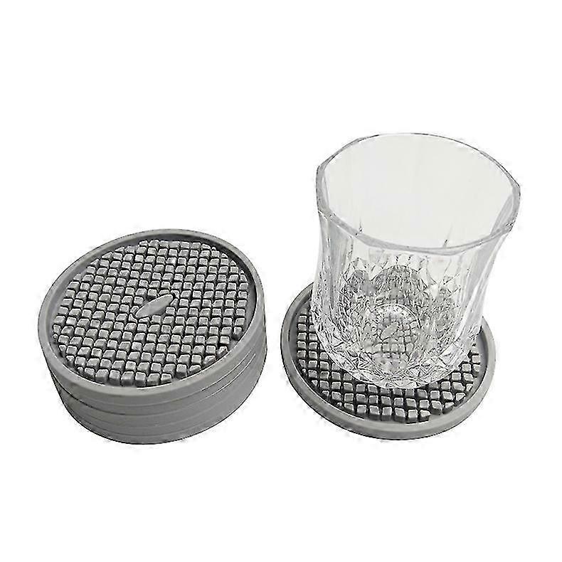Silicone Coasters Set of 6, Absorbent Drink Mats with Deep Grooves, 4 Inch Large, Grey