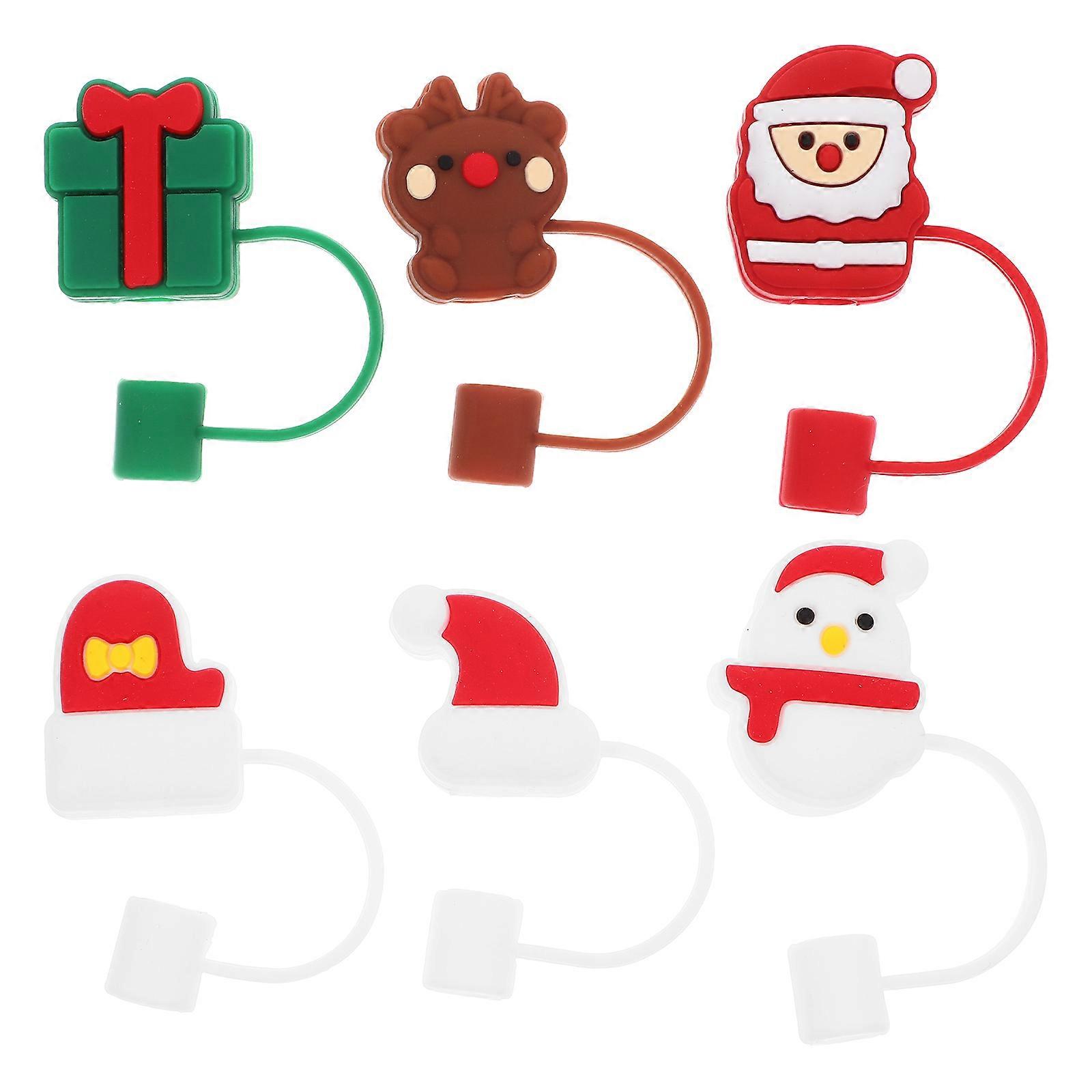 Silicone Straw Toppers Christmas Accessories Santa Hat Snowman Reindeer Design For Holiday Gatherings 6Pcs