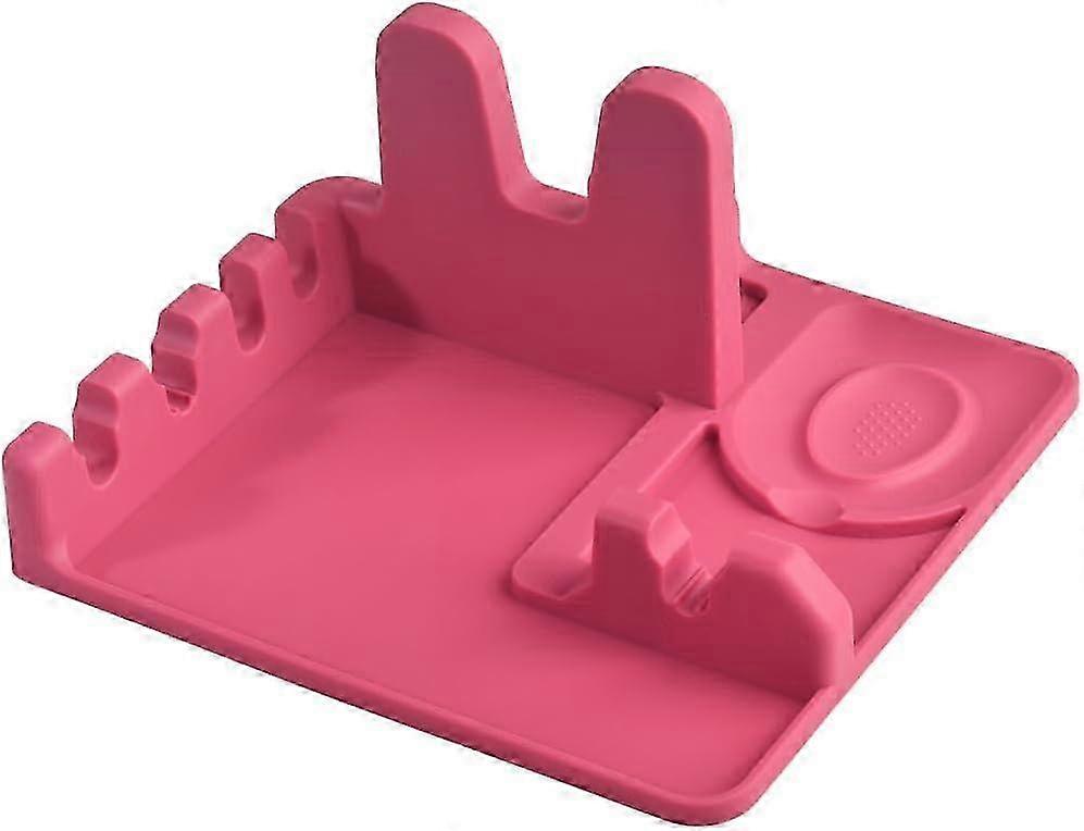 Silicone Spoon Rest & Pot Lid Holder, Heat Resistant Kitchen Utensil Stand - Red