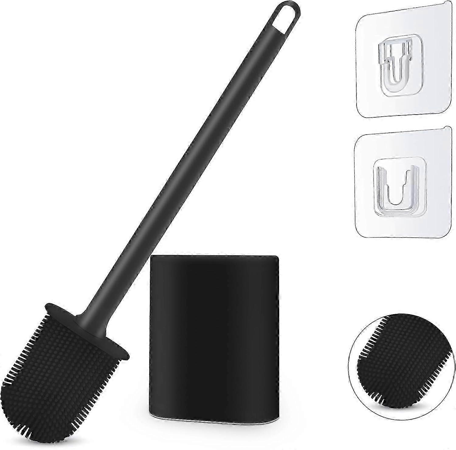Silicone Toilet Brush, Bathroom Deep Cleaning Bowl Buddy Toilet Brush with Soft Flexible Bristles and No-Slip Plastic Handle--