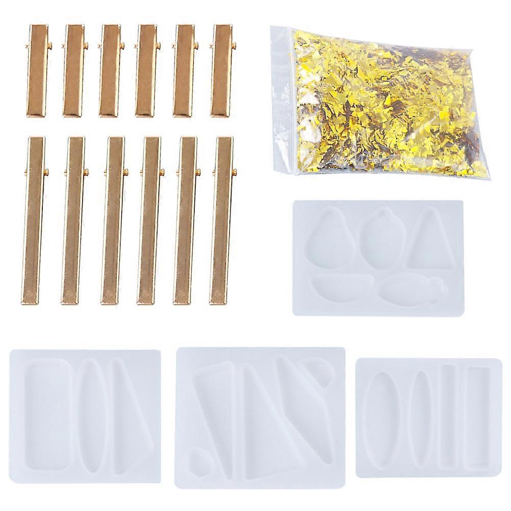 Silicone Barrette Mold Hair Clips Making Kit Women Gold 6cm Epoxy Hairpins Making Hair Accessories 1Set