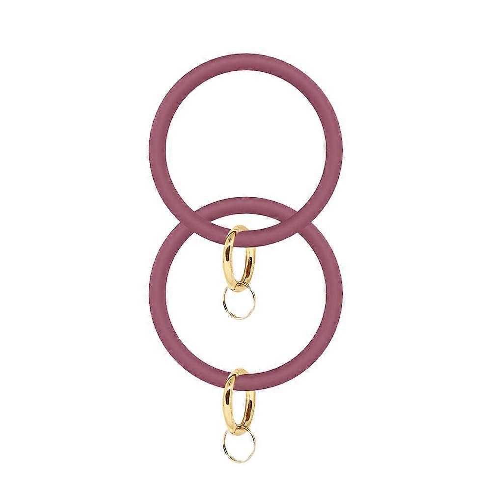 Silicone Beads Keyring Large Circle Wristband Bracelet Rosy Pink Anti Loss 2Pcs