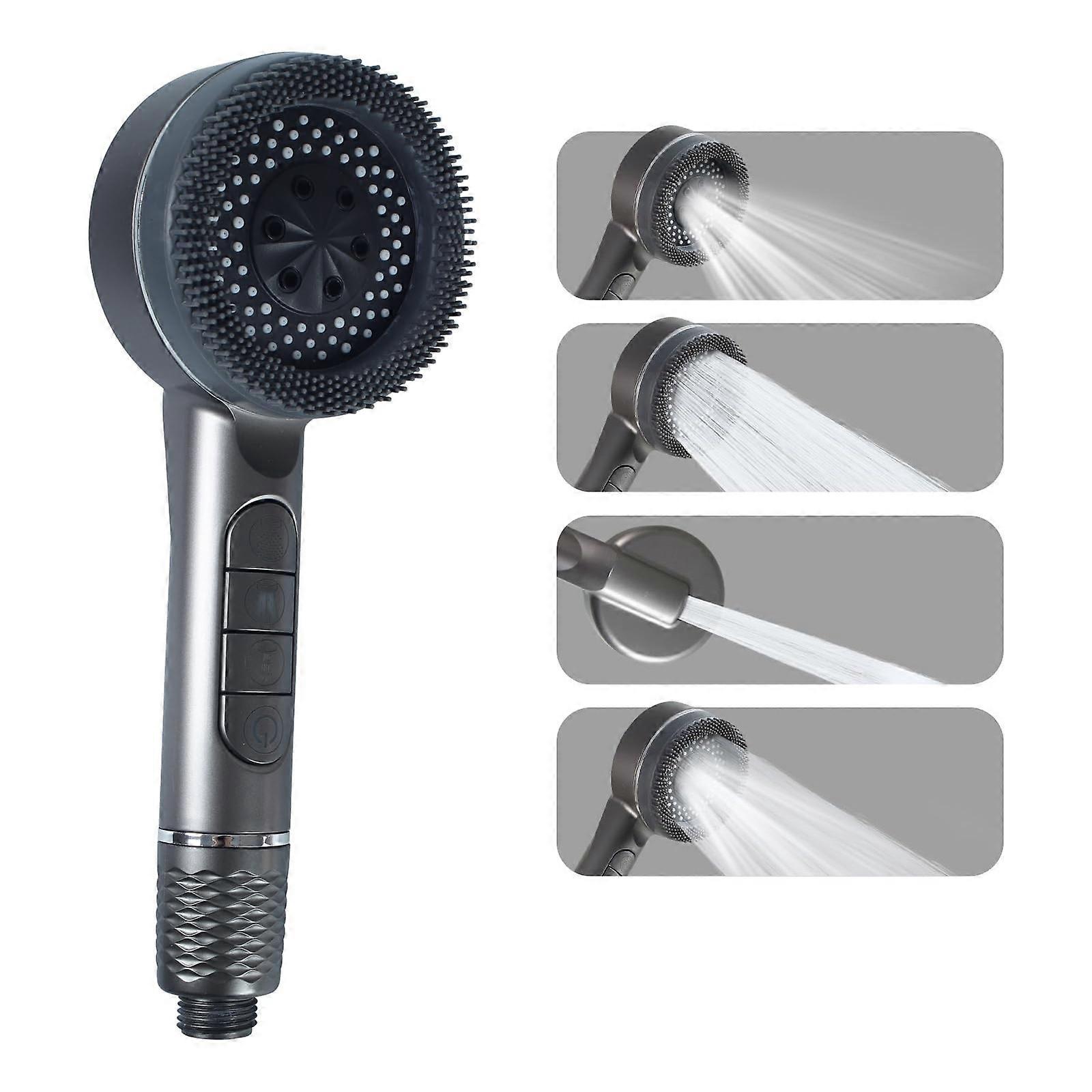 Handheld Shower Head with Silicone Massage Brush, High Pressure Filted Shower Head with 4 Spray Modes