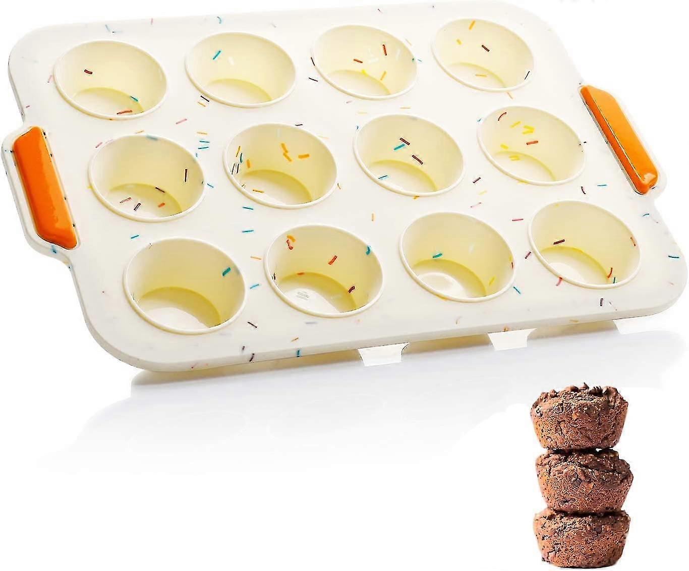 set of 12 silicone muffin molds non-stick 29 x 21 x 2.5 cm beige