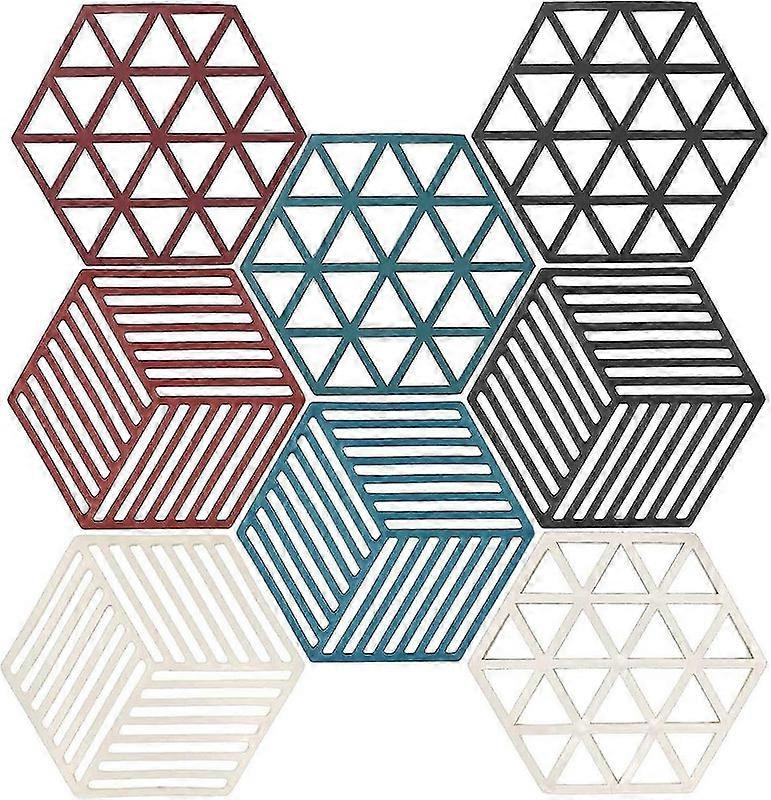 Non-slip Silicone Mat,used to protect and decorate your kitchen table,with good thermal insulation and non-slip properties,Ideal for your home,your kitchen,your living room,your bar. These Mats silicone coaster pads are washable and flexible,Stains can be cleaned quickly and easily,Both environmental protection and practicality. Kitchen coaster non-slip mat Made of high quality silicone quality,Safe and durableBoth heat insulation and non-slip. Silicone Trivet Kitchen Mat,adopt hollow design style,creative styles of geometric,full of style and modernity.is beautiful and practical. The silicone placemat makes it match your kitchen decor or personality, adding a unique atmosphere. These silicone placemats can be used as placemats, coasters,dish mats,i heat insulation. The table mat has a good heat insulation effect, which can better protect your furniture from burning. The material is plastic rubber, very easy to clean and use and store. Package Includes 8*silicone heated underpads