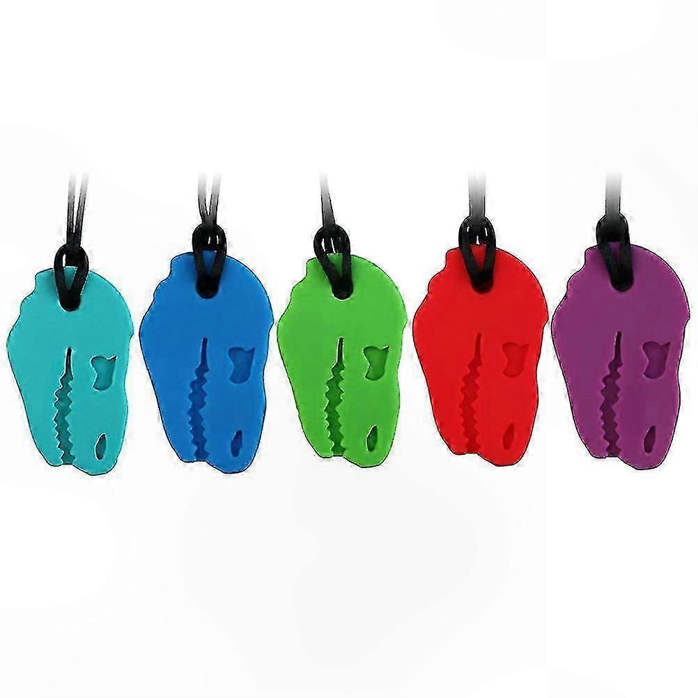 Silicone Dinosaur Chewable Pendants - 5 Pack Sensory Tools for Kids & Adults, Food Grade Material