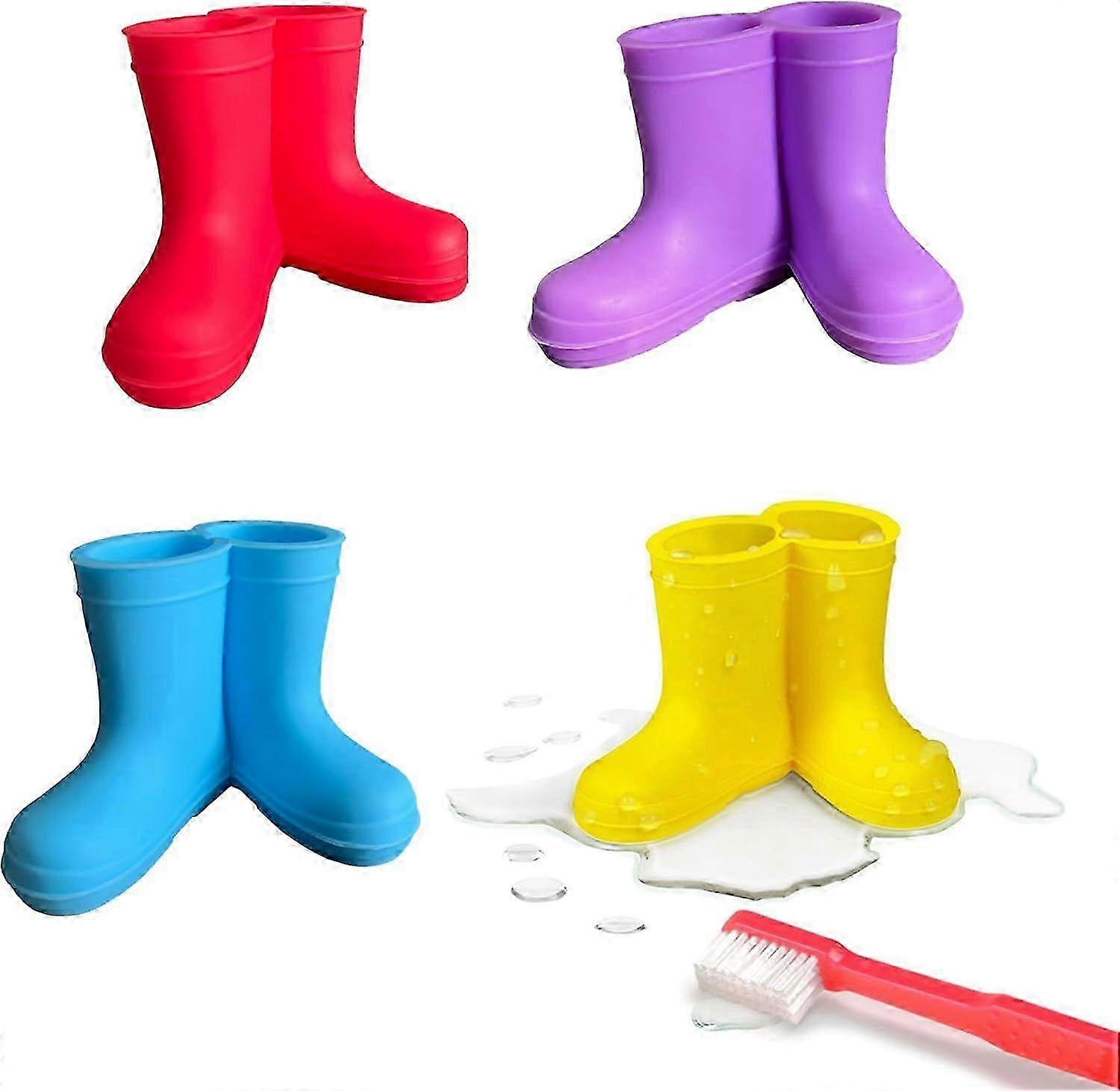 Silicone Toothbrush Holder, 4Pcs Rain Boot Toothbrush Holder with Drainage and Ventilated Design