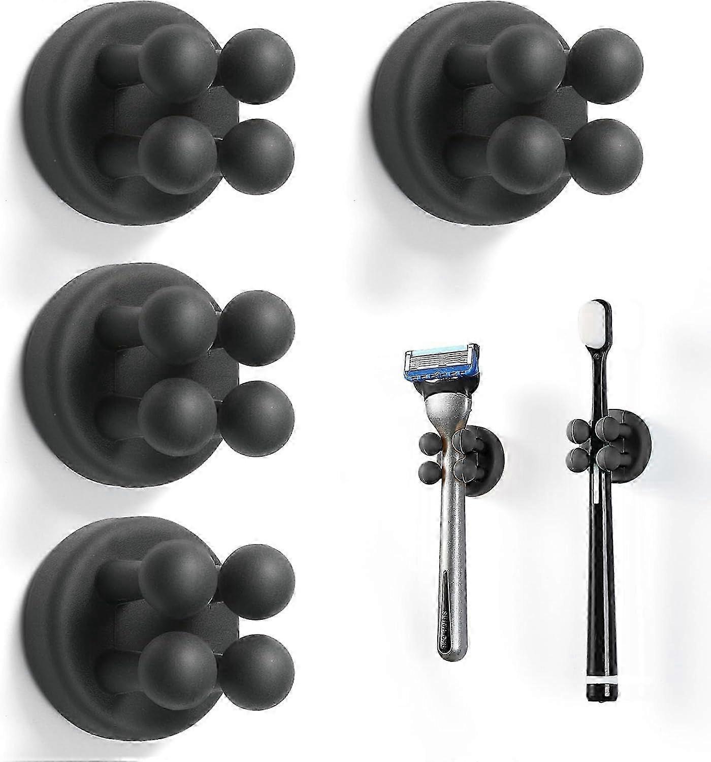 Silicone Toothbrush Holder-4 Pcs Bathroom Hooks,Waterproof Self-Adhesive-Black