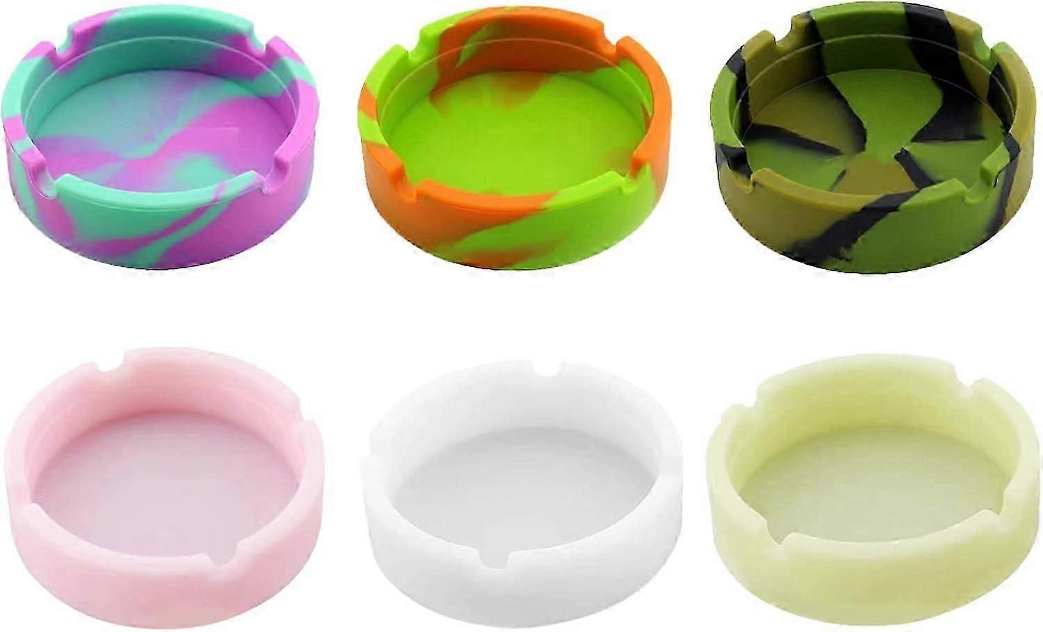 Silicone Ashtrays 6-Piece Colorful Fluorescent Outdoor Ashtray Portable Non-Stick Heat-Resistant Ashtray Set