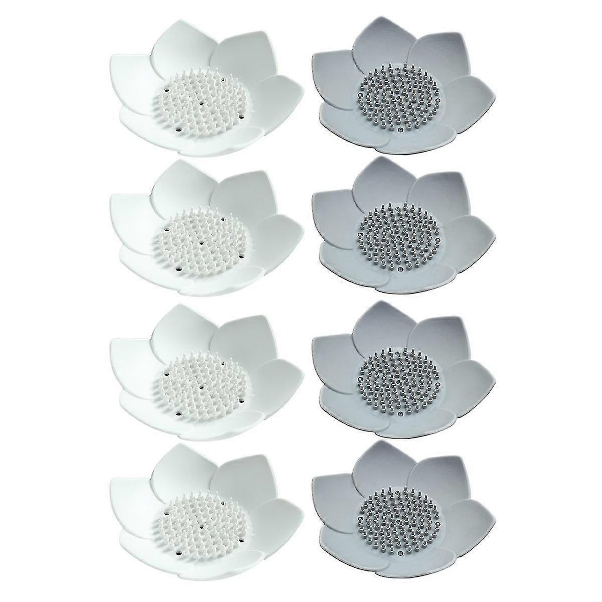 Japanese flower soap tray made of silicone-a pack of 8 soap holders (white and gray)