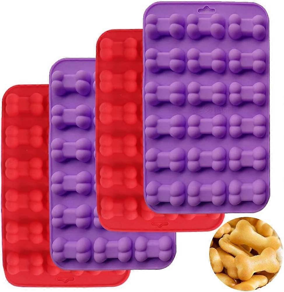 Silicone Ice Molds Dog Bone Shape Trays Reusable Bakeware Maker for Baking Chocolate Candy Oven Microwave Freezer Dishwasher Safepurple, red (4pcs)