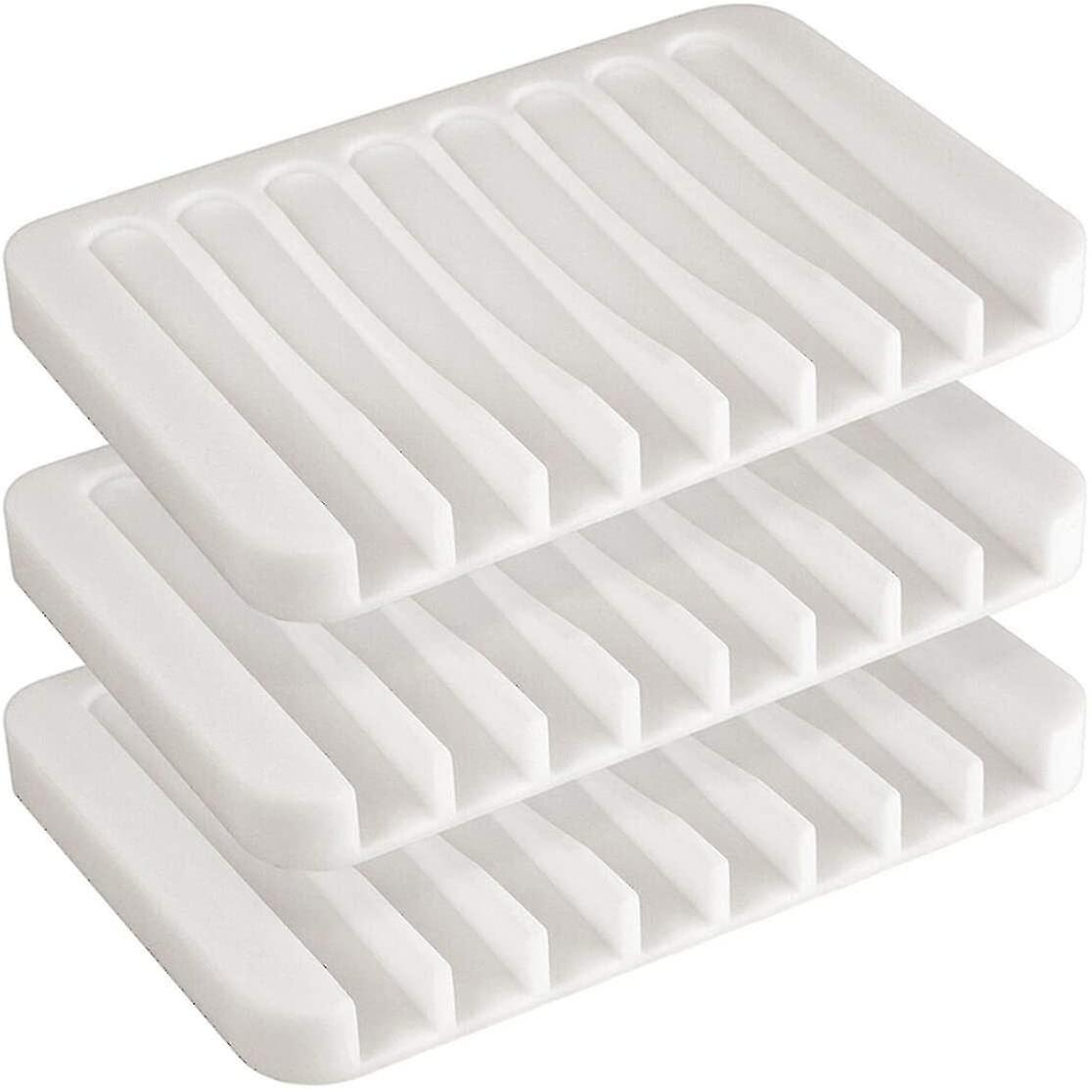 Safe material Made of high quality flexible silicone. Flexible, pure, soft and safe, not afraid of falling, not easily deformed. Compared to other wood and steel soa dish, it will not get mould and no rust.Waterfall Draining Design Hollow structure of comb shape allows the water to flow out, makes is convenient to drain, keeps your soap dry and prolong its life.Easy to Use These soap dishes are suitable for different size of soaps. It will not stick tightly with your soap with its comb design, moreover the soap doesn't slide off, very convenient to clean with brush and water.Versatile to place Gorgeous soap box can be placed in the shower/ bathroom/ bathtub/ countertop/ kitchen. You can place soap/ keys/ glasses/ sponge and razors, etc on it. Versatile and multiuse.Good Package Product packed with Kraft paper box, environmentally friendly to our Earth. Package includes 3 Pack soap dishes with size of 11 x 8 x 1cm.Flexible Silicone:Made of high quality flexible silicone. Flexible, pure, soft and safe, not afraid of falling, not easily deformed.Waterfall Draining Design:Hollow structure of comb shape allows the water to flow out, makes is convenient to drain, keeps your soap dry and prolong its life.Versatile to Place:Gorgeous soap box can be placed in the shower/ bathroom/ bathtub/ countertop/ kitchen. You can place soap/ keys/ glasses/ sponge and razors, etc on it. Versatile and multiuse.
