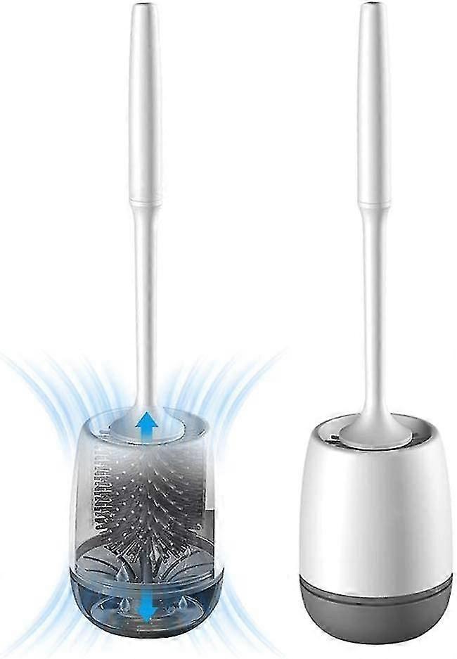Silicone Toilet Brush And Holder Set, Rubber Cleaning Brush With Soft Bristle