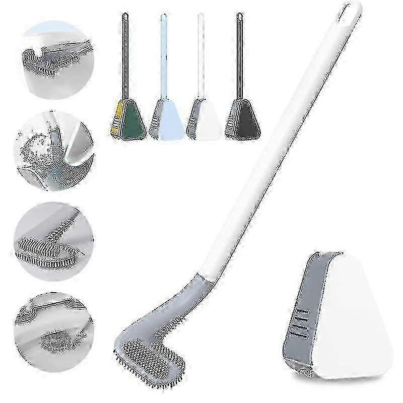 360 Dead Corner Cleaning: : The unique triangular brush head design can penetrate deep into pipes and grooves to easily remove dead spots and stains, so that every corner of the toilet can be deeply cleaned on every side, leaving no dead corners and keeping it clean at all times. The ergonomic toilet brush makes cleaning easier and easier to clean. materials: : The silicone toilet bristles are made of soft and elastic TPR, which has a stronger cleaning power and will not leave scratches on the surface of the toilet, making housework easier. Easy to rinse, the bristles will not adhere to dirt Wall-mounted design: : with hooks for installation without drilling and nails, sturdy and non-marking stickers, waterproof and moisture-proof, sturdy and durable. You can hang the brush head on the wall without punching holes, or put the toilet brush on the floor. Breathable bracket: : a storage box with an automatic opening and closing lid, the brush head is not exposed, and it is automatically air-dried to effectively isolate peculiar smells. Space saving: : The brush set has a compact design and is suitable for small bathrooms. It can be hidden in a narrow bathroom and takes up almost no space. Simple and beautiful design complements your bathroom Note: Due to the light and screen setting difference, the item's color may be slightly different from the pictures. Please allow slight dimension difference due to different manual measurement.