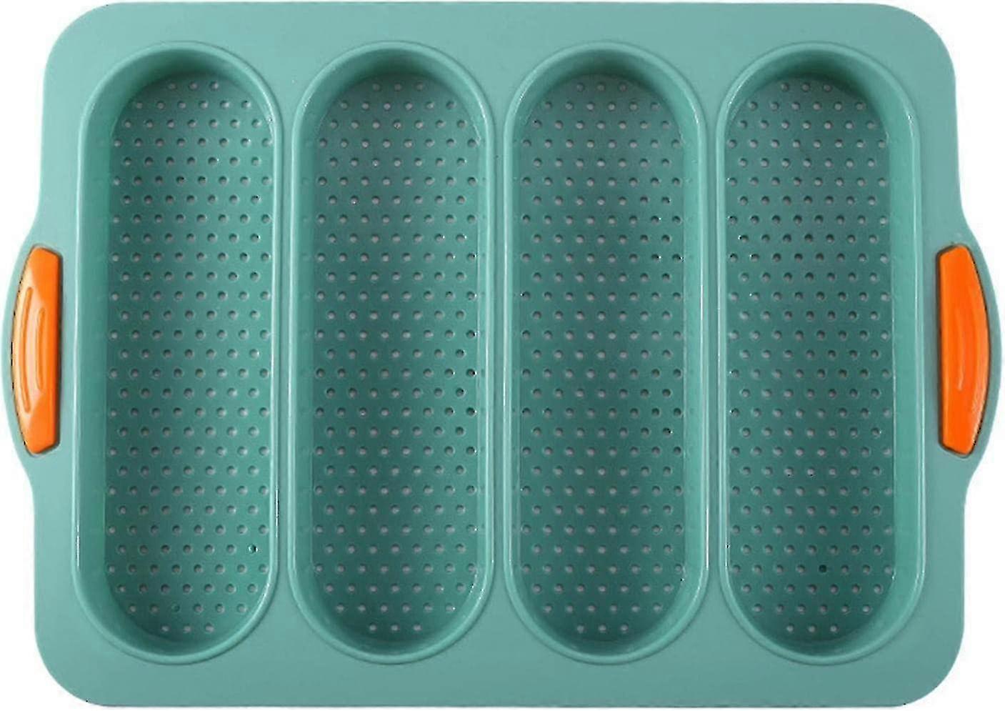 NonHarmful Material: It does not produce any harmful fumes and is safe to use for any type of food. French bague bread the mold is made of highquality foodgrade silicone. It will not react chemically with any food.Washing Portable: It can be easily cleaned in the dishwasher. There is very few leavings on the bread pan and it can be cleaned with just warm water and soap solution a nonstick pan and is easy to clean. The silicone bread pan is soft and flexible it can keep its shape and pop out bread easily and quickly.HighTemperature Resistance: Our silicone bread baking molds can withstand temperatures from 40/40 to 230/446 highly heat resistant and durable. Silicone is highly insulated and won't burn your hands after baking And it is highly flexible and keeps its shape without deformation under high temperatures. Very safe to use in ovens microwaves dishwashers and refrigerators.Uniform Ventilation: French bread is crispy and delicious. The holes in the tray of the silicone baking tray keep the ventilation even and release the heat perfectly. These holes also help to release moisture from the bread.Holes: Lovely size perfect for baking breakfast afternoon tea. The silicone bread baking pan contains 4 short loaf molds and can bake 4 bread at a time. It can make cupcakes to serve family and friends.