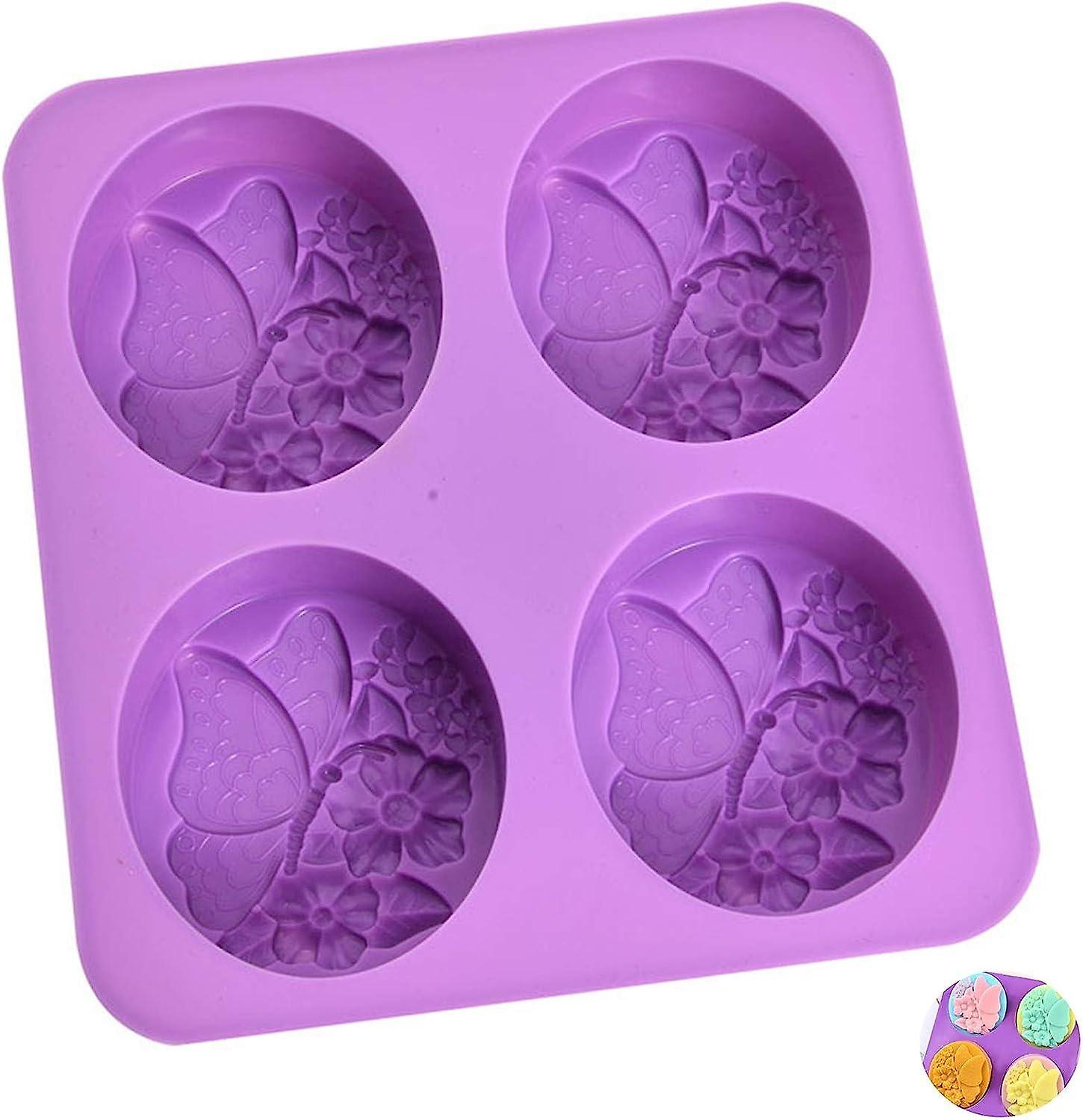 Silicone Molds 4 Round Holes Silicone Soap Molds Butterfly Shape DIY Fondant Silicone Soap Mold Easy