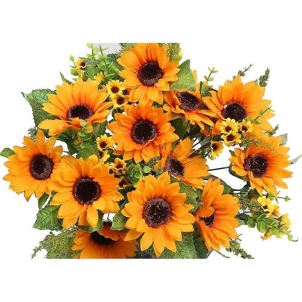 Silk Sunflowers Artificial Silk Sunflower Bouquet Wedding Decor Bride Holding Flowers Multi 17.7 * 8 * 3.5 Inch 2Pcs