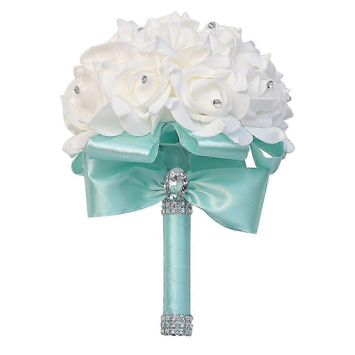 Artificial Rose Wedding Bouquet with Silk Ribbon - Light Blue Bridesmaid Bouquet