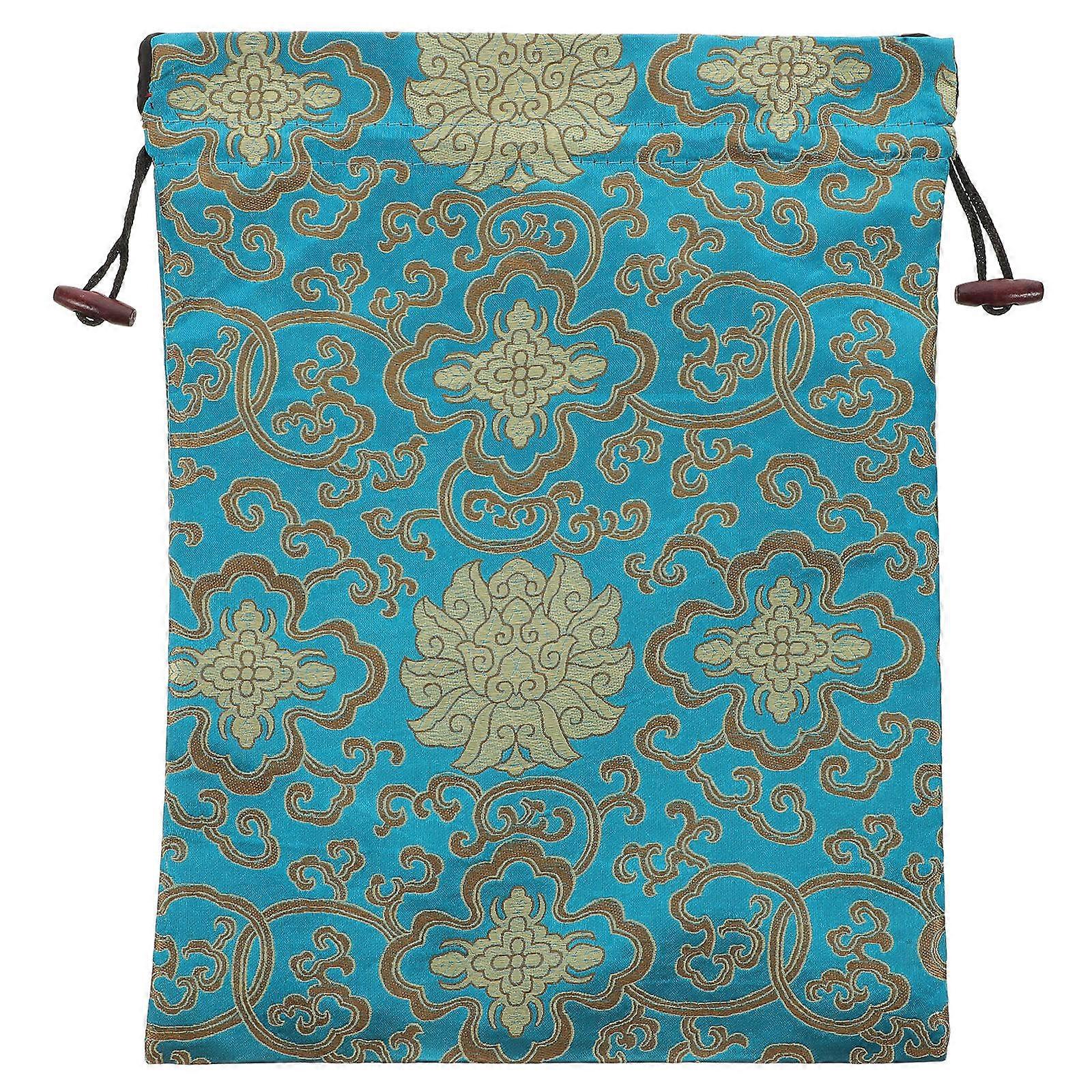 Silk Drawstring Bag Chinese Style Jewelry Pouch Storage Bag for Wedding Party (Blue, Random Pattern)