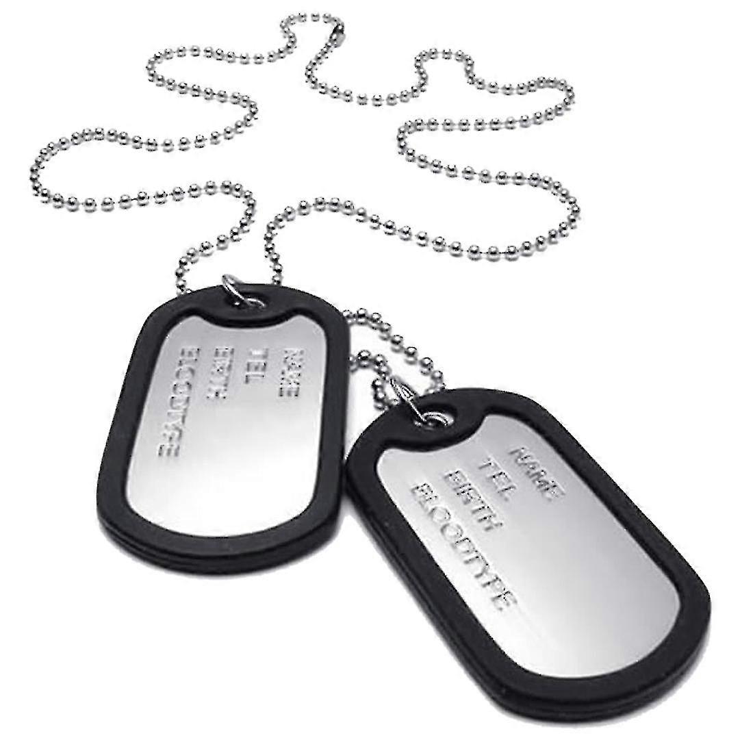 Men's Jewelry Necklace Featuring Two Tag Style Dog Tag Pendants with 68 Cm Chain in Silver and Black Colors