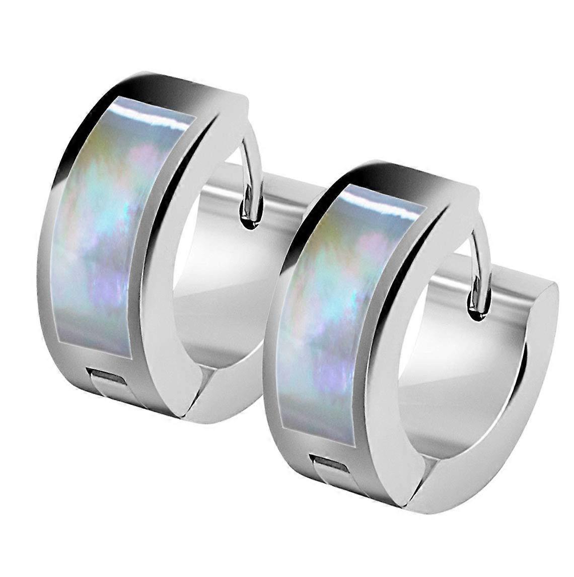 Stainless Steel Hinged Hoop Earrings with Mother of Pearl in Silver Diameter: 17 mm / 7 mm wide