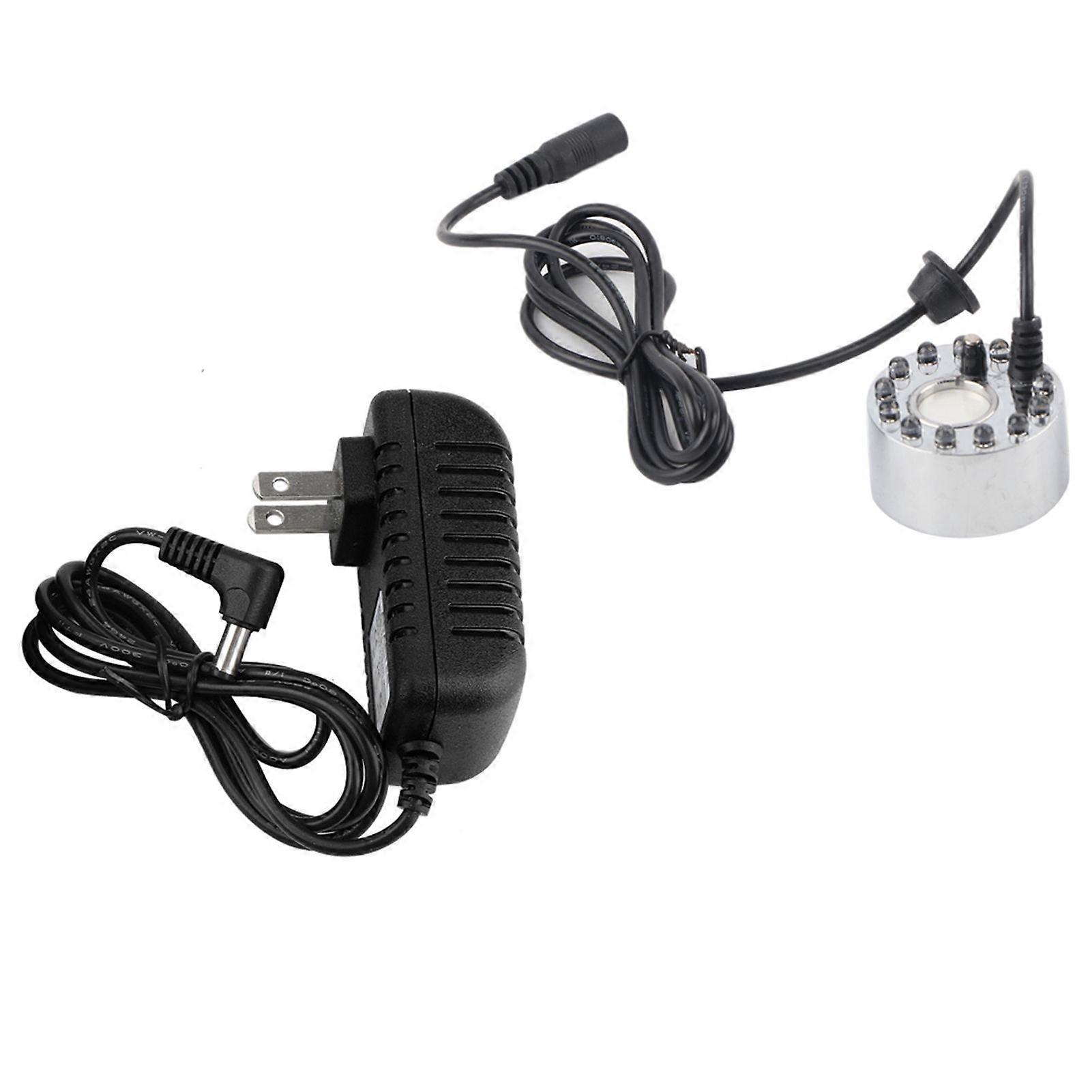 Silver Aquarium 12 LED Light Ultrasonic Mist Maker Atomizer Water Fountain Pond Indoor Outdoor Fish Tank Supplies AccessoryUS Plug 110~240V