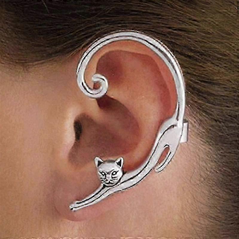 Silver Cat Ear Clip-On Earrings for Women & Girls Feline Jewelry
