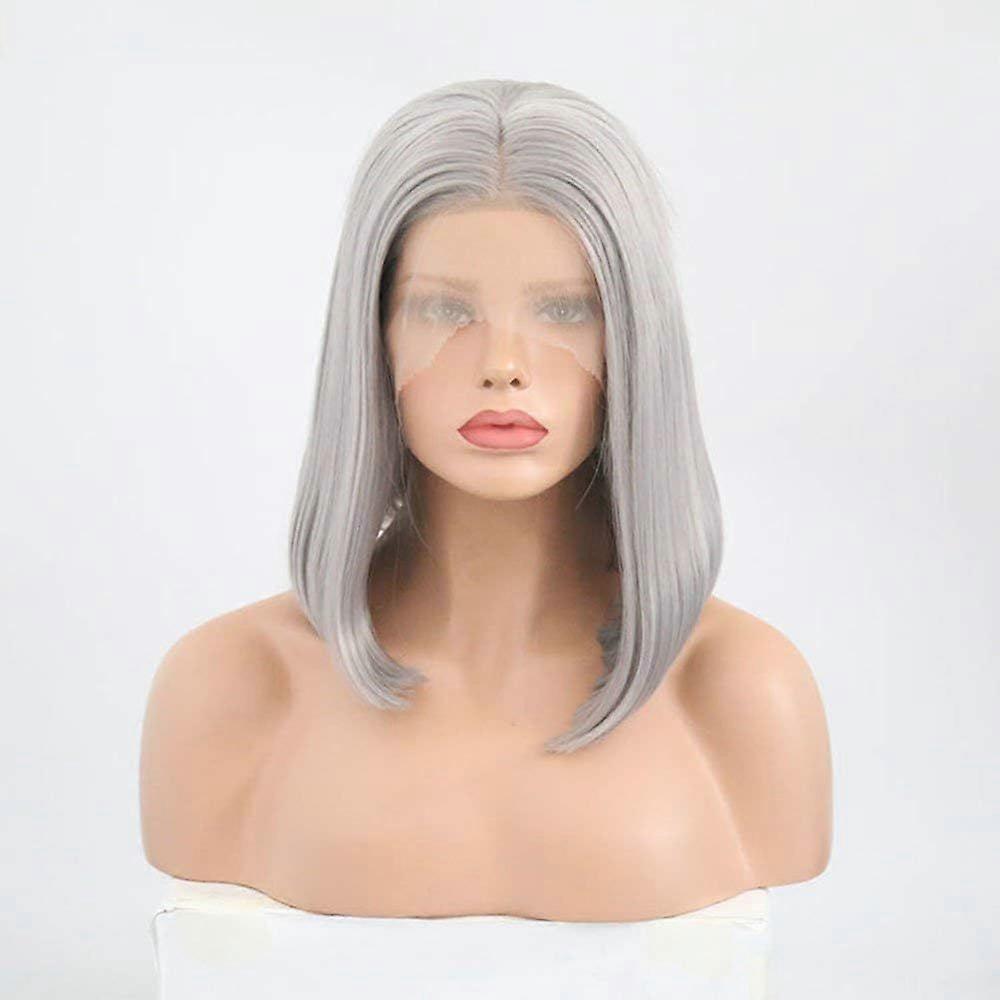 Silver Gray Short Straight Hair Synthetic Lace Wigs Short Bob Synthetic Lace