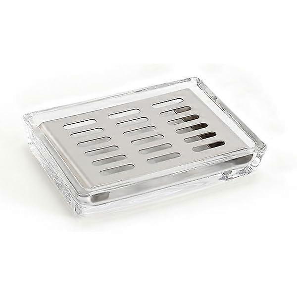 Silver Clear Glass Soap Dish with SUS304 Stainless Steel Tray Rectangular Soap Holder for Bathroom Counter, Shower, Kitchen