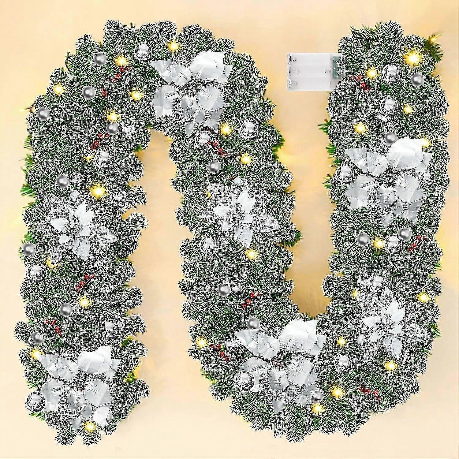 Silver Christmas Wreath, Christmas Wreath With Lights, 2.7m Christmas Wreath Decoration With Lights, Christmas Wreath Decoration, Christmas Wreath For