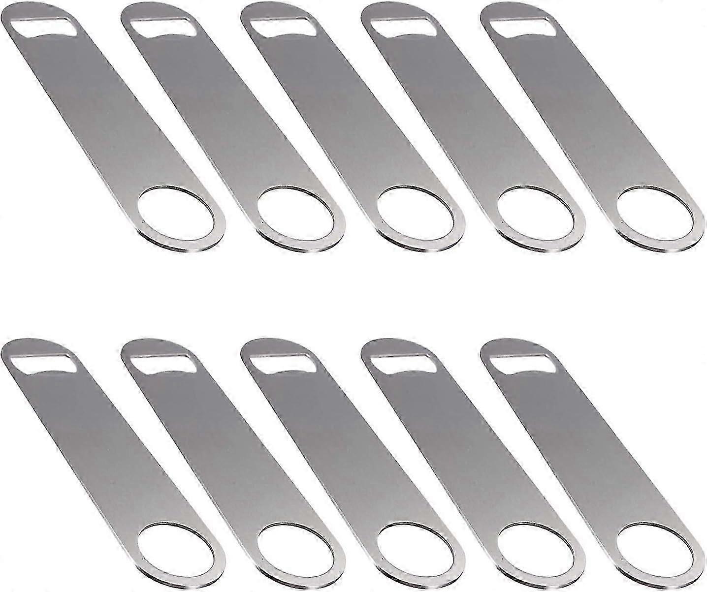 Set of 10 Flat Stainless Steel Bottle Openers with Silver Coated Handle