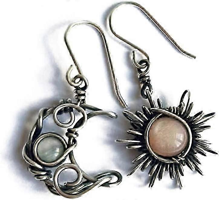 Silver Sun and Moon Hook Earrings Bohemia Celestial Moonstone Earrings