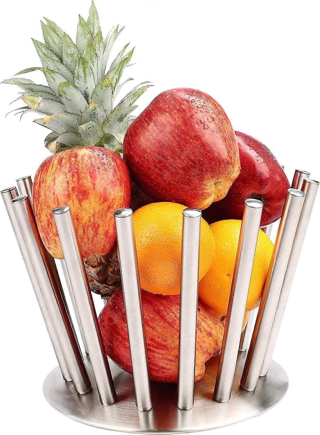 STAINLESS STEEL FRUIT BOWL: The bowl is made from stainless steel and is modern and contemporary in design. As the rods around the edge are spaced apart, you can see the fruit through it. It has been designed to display your fruit and vegetables beautifully.